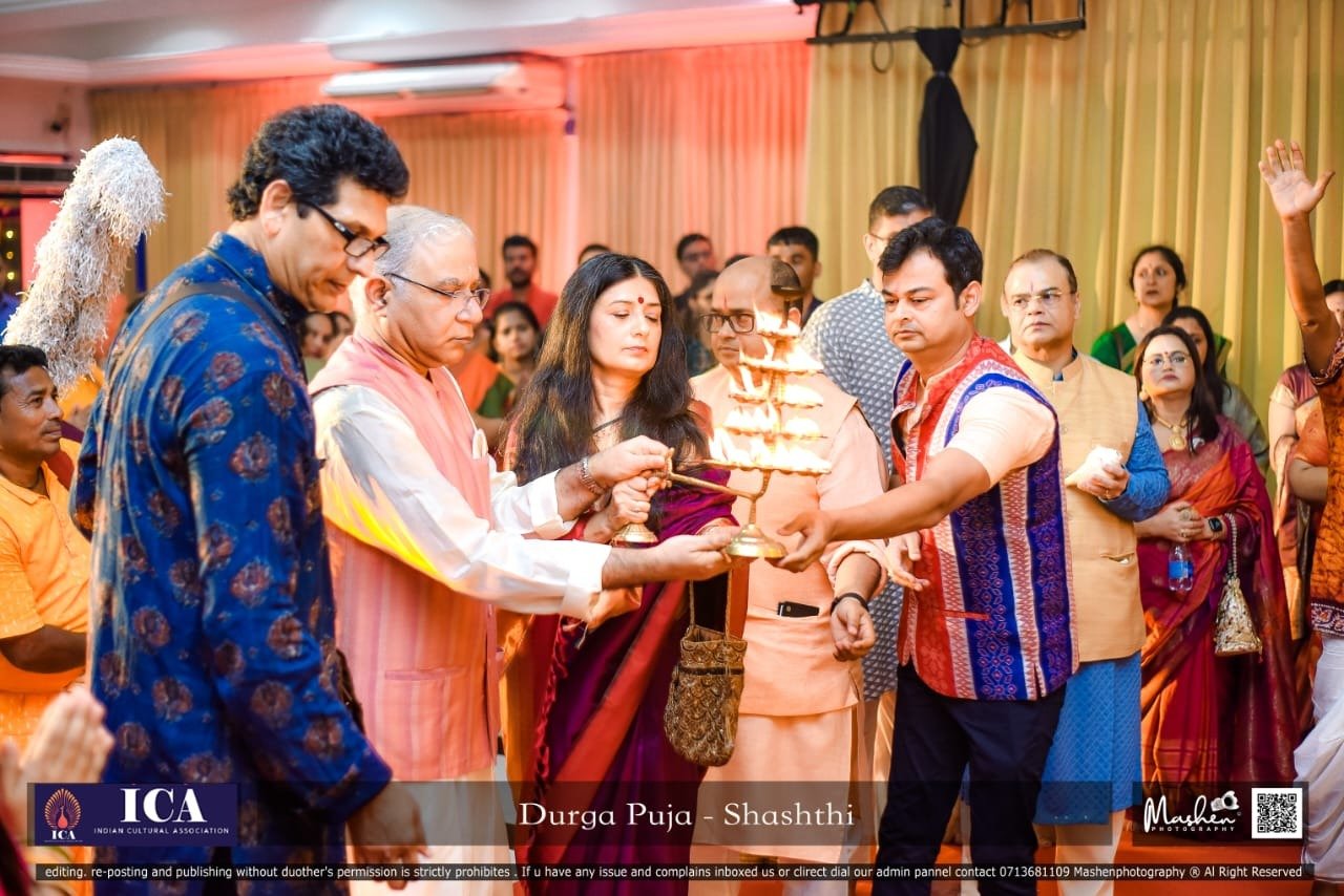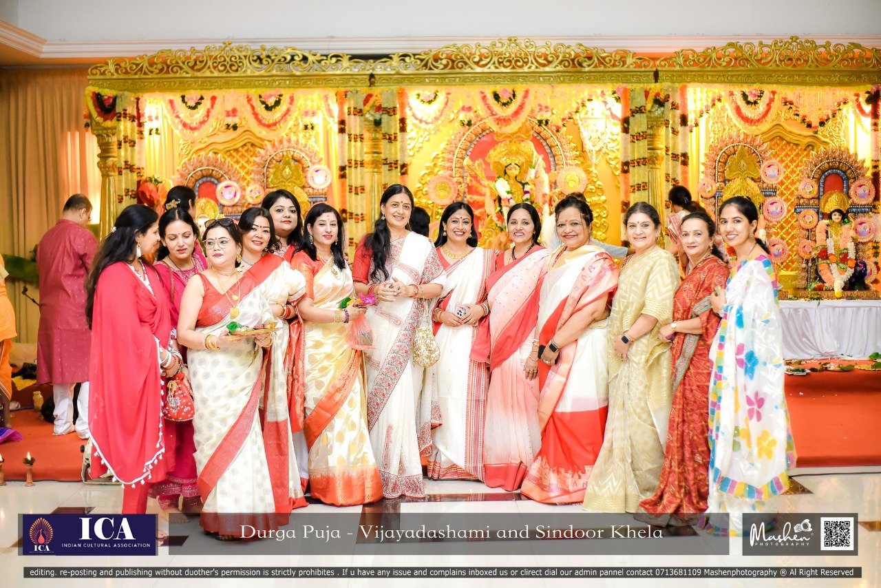 - Daily rituals, including pujas, pushpanjali, aarti, and bhog, were conducted, accompanied by cultural programs that showcased the richness of Indian art and heritage. The celebration also featured music, dandiya dance, and traditional performances by both community members and Sri Lankan artists - reflecting the harmony and cultural diversity that Durga Puja embodies. The festivities culminated on the final day with the traditional Sindoor Khela and Visarjan, marking the farewell of Goddess Durga with joy and gratitude.