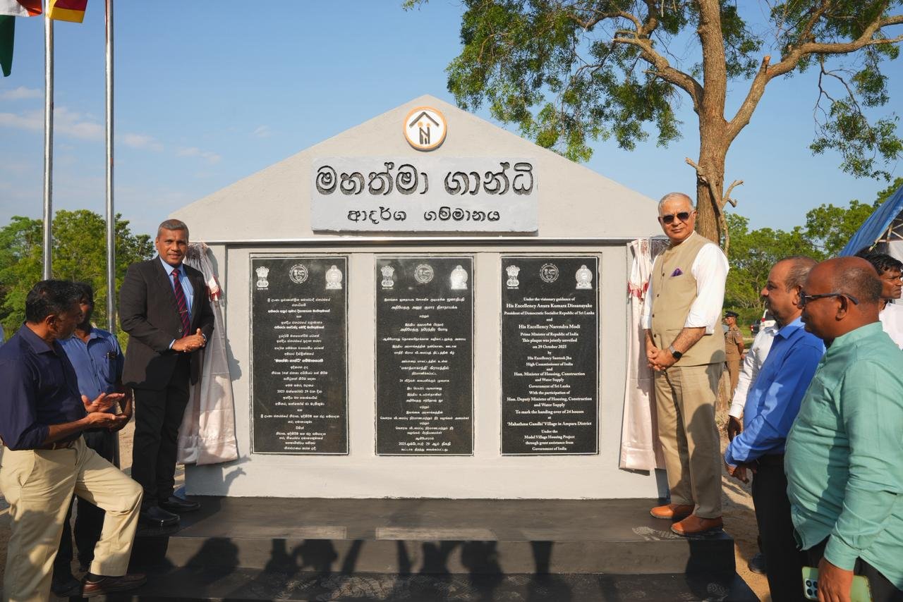 High Commissioner of India to Sri Lanka, H.E. Santosh Jha and Minister of Housing, Construction and Water Supply Hon. (Dr.) Susil Ranasinghe jointly inaugurated and handed over Mahatma Gandhi Model Village in Ampara to the 24 beneficiary families on 29 October 2025. Hon. T.B. Sarath, Deputy Minister of Housing, Construction and Water Supply; Hon. Wasantha Piyathissa, Deputy Minister of Rural Development, Social Security and Community Empowerment; and Hon. Priyantha Wijerathna, Member of Parliament, also participated in the ceremony.